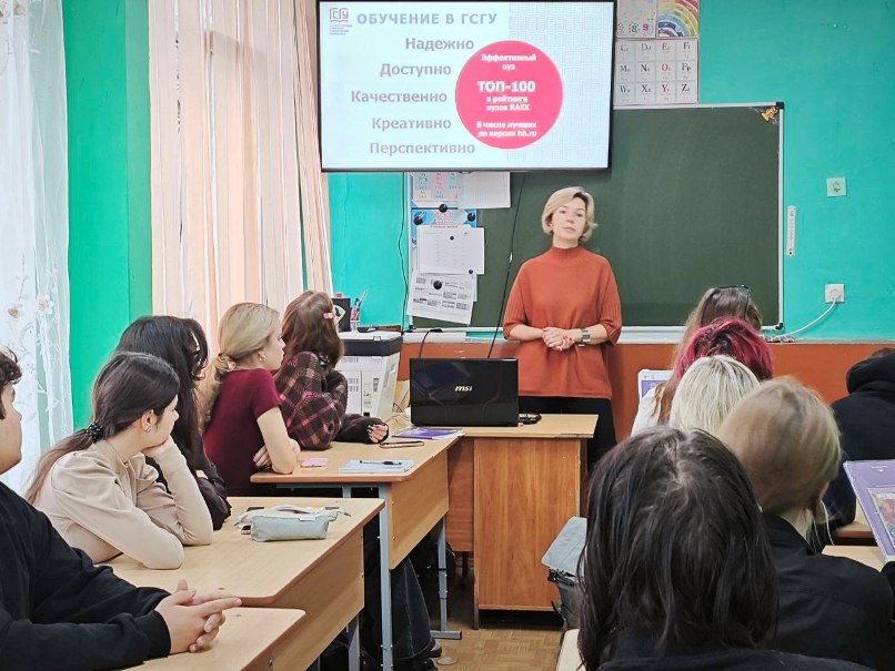 Доцент кафедры физической культуры Перова Галина Михайловна и доцент кафедры германо-романских языков и методики их преподавания ФИЯ ГСГУ Чернякова Юлия Сергеевна сегодня побывали в МБОУ Лицей № 4 Г.о. Коломна. Учащиеся 11 класса получили подробную информацию о поступлении в один из ведущих вузов Юго-Востока Подмосковья - ГСГУ! Обсудили условия поступления, молодежную политику, студенческую жизнь в университете и, в частности, на факультете иностранных языков! Беседа вызвала неподдельный интерес. Будущие абитуриенты задавали много вопросов. Уверены, что теперь у них еще больше мотивации стать частью нашей дружной университетской семьи! Благодарим администрацию и педагогический коллектив МБОУ Лицей № 4 Г.о. Коломна за многолетнее и плодотворное сотрудничество!