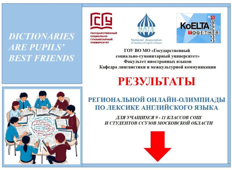 Результаты олимпиады по лексике английского языка для школьников и студентов ССУЗов МО Dictionaries Are Students’ Best Friends 2025