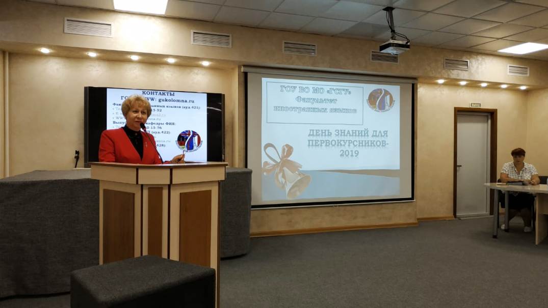 29 августа 2019 года руководство факультета иностранных языков ГСГУ встретилось со студентами 1 курса. И.И. Саламатина, декан факультета, профессор, доктор педагогических наук, поздравила вчерашних абитуриентов с успешным поступлением в университет, с новым этапом их жизни и с приближающимся Днём знаний ГСГУ. Н.Ю. Степанова, кфилн, доцент, зам.декана по учебно-методической работе, и В.Д. Гришенко, кпн, доцент, зам.декана по воспитательной работе, познакомили первокурсников с организацией учебного процесса и воспитательной деятельности на факультете. Дфилн, профессор Н.А. Ахренова рассказала о возможностях языковой подготовки в рамках Университетского регионального лингвистического центра, руководителем которого она является.